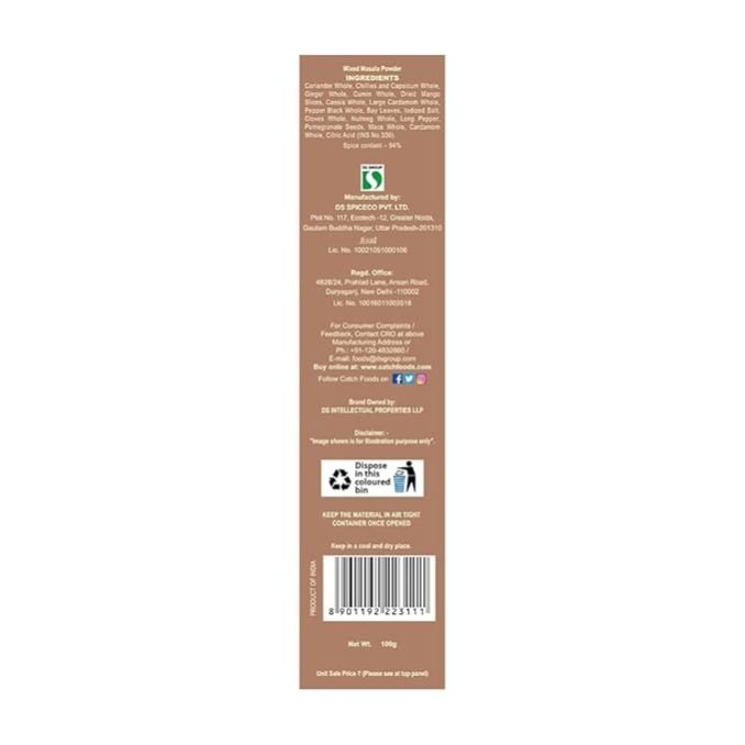 Adds Authentic Flavour: Catch Rajma Masala enhances the natural taste of Rajma (Kidney Beans), giving it a traditional Punjabi flavour with a rich, delicious taste and aroma 100g