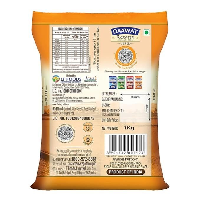 PREMIUM AGED BASMATI: Delight in the premium quality of Daawat Rozana Super Basmati Rice, aged to perfection to ensure a rich aroma, superior taste, and elongated grains.
