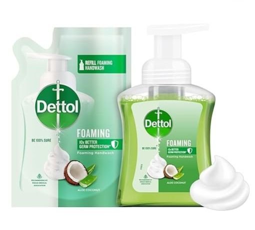 0 Review Of Product Dettol Foaming Handwash Pump + Refill Combo, Aloe Coconut (250ml + 200ml) Rich Foam Moisturizing Hand Wash Soft on Hands