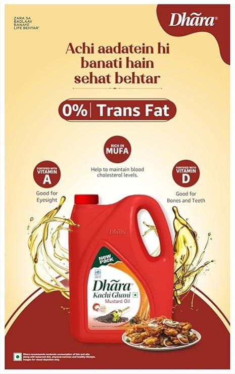 Dhara Kachi Ghani Mustard Oil (0% Trans Fat), 5 L Jar