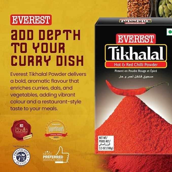 The spicy taste of Indian food can be likened with the Paprika bearing Mexican cuisine that sets your palate on appetising fire! Everest is a brand that has been well known for qualitative spices and spice mixes as well. This spice blend is one that brings in the fiery magic of red chillies, well known in India!