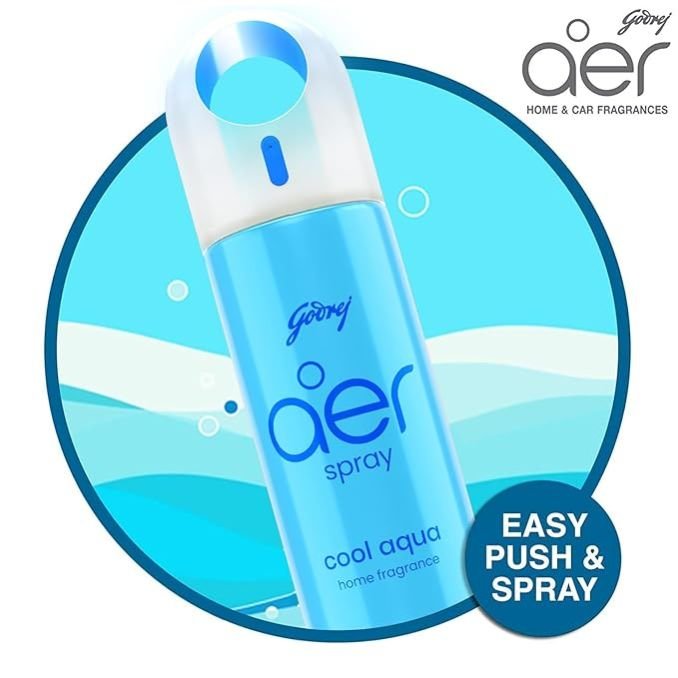 Contains: 1 unit of Godrej aer spray - Room freshener (240ml). Variant - Cool Surf Blue REFRESHING FRAGRANCE: Inspired by the smooth sea breeze flowing over coral reefs in Mauritius CONVENIENT TO USE: Easy push and spray mechanism designed for convenience LONG-LASTING FRAGRANCE: Makes every surface smell amazing for long USE ANYWHERE: Bedroom, Living Room, Workspaces and Public Spaces