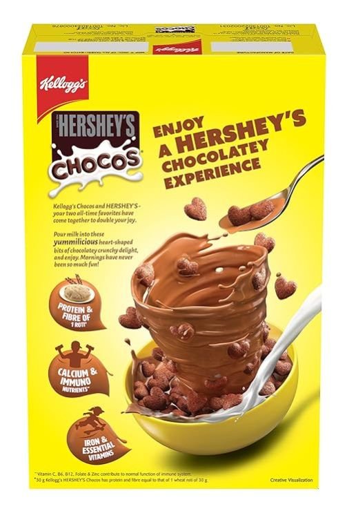 Kellogg’s Chocos and HERSHEY’S – your two all-time favourites have come together to give you “toooo much chocolatey fun”. Introducing New Kellogg's HERSHEY'S Chocos, a yummy heart-shaped chocolatey crunchy breakfast cereal that makes mornings fun for kids. +One serve (30g) of Kellogg’s HERSHEY’S Chocos gives the Power of 5 by providing Protein & Fibre of 1 roti*, Calcium, Iron, Immuno nutrients** and Essential Vitamins. *Each serving of 30g of Kellogg's HERSHEY’S Chocos has Protein and Fibre equal to that of 1 wheat roti of 30g. It is high in Calcium & Protein that are essential for your child's growing body.