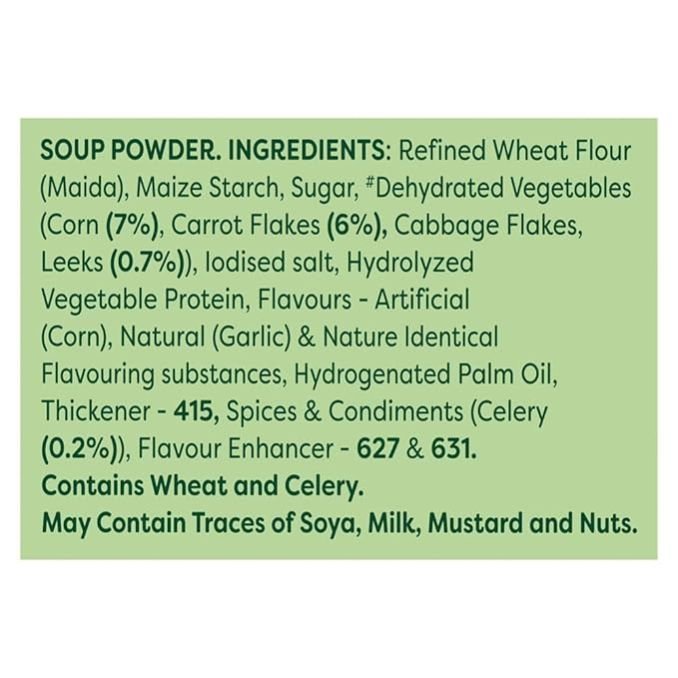 Made with 100% real vegetables Contains no added preservatives Country of Origin: India Serves 4 Goes well with: Knorr Chinese Manchurian & Knorr Chinese Hakka Noodles/Fried Rice Chef's Tip: Garnish with toasted sweet corn and chopped coriander