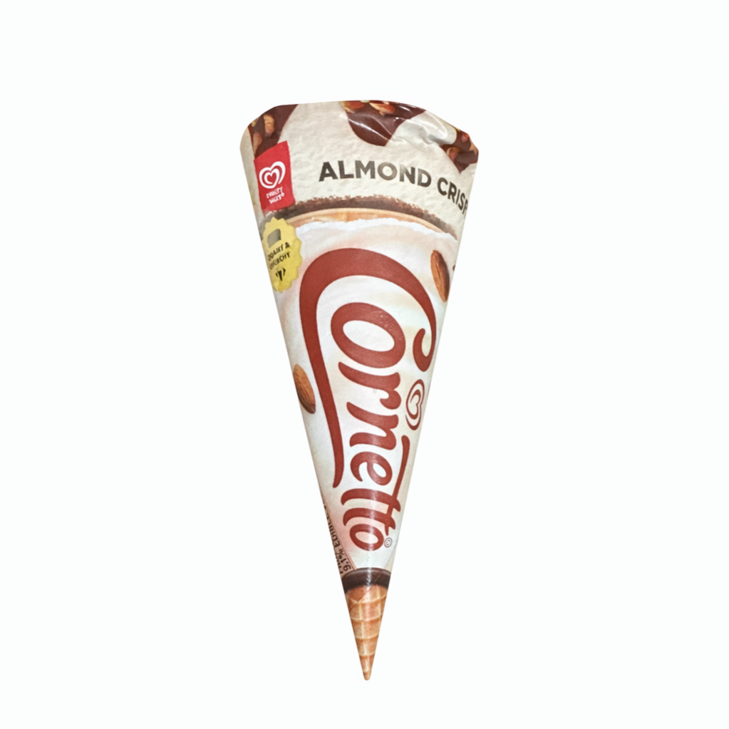Kwality Wall’s Cornetto Almond Crunch Ice Cream Cone is an indulgent frozen treat that combines the rich crunch of with smooth, creamy ice cream and a signature chocolate disc on top.