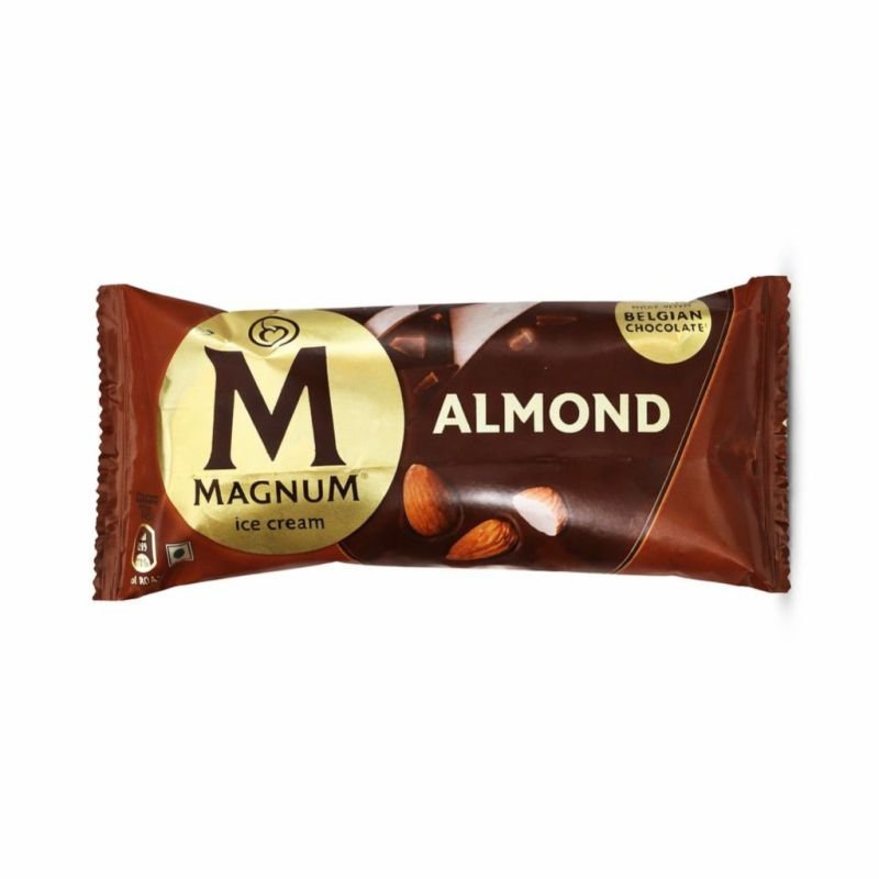 Indulge in the rich and creamy taste of Kwality Walls Magnum Almonds Ice Cream, a delightful treat that combines the smooth texture of ice cream with the crunch of almonds.