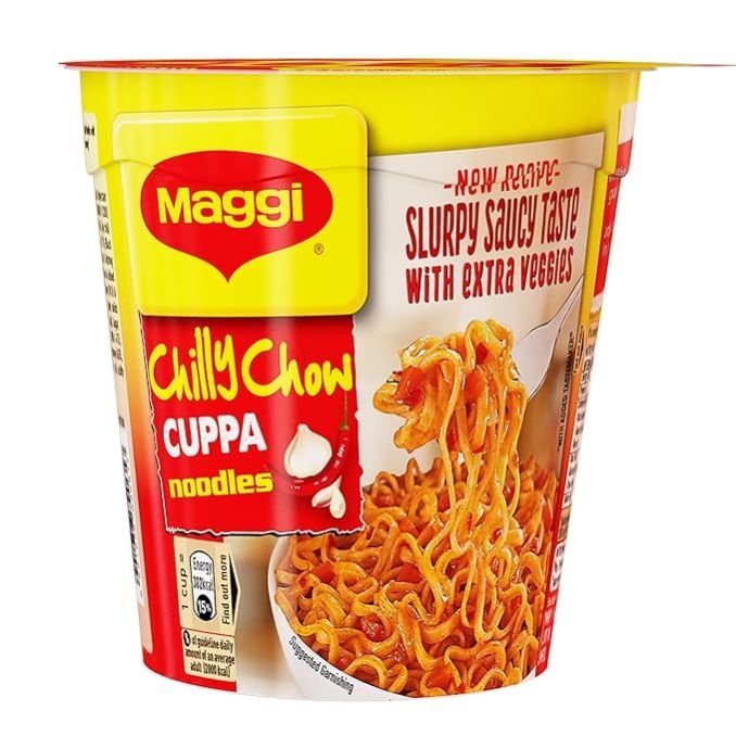 MAGGI Instant Cuppa Noodles, Chilly Chow Vegetarian, 70 Gm Pack | New Recipe | Delicious Slurpy Saucy Taste | With Extra Veggies