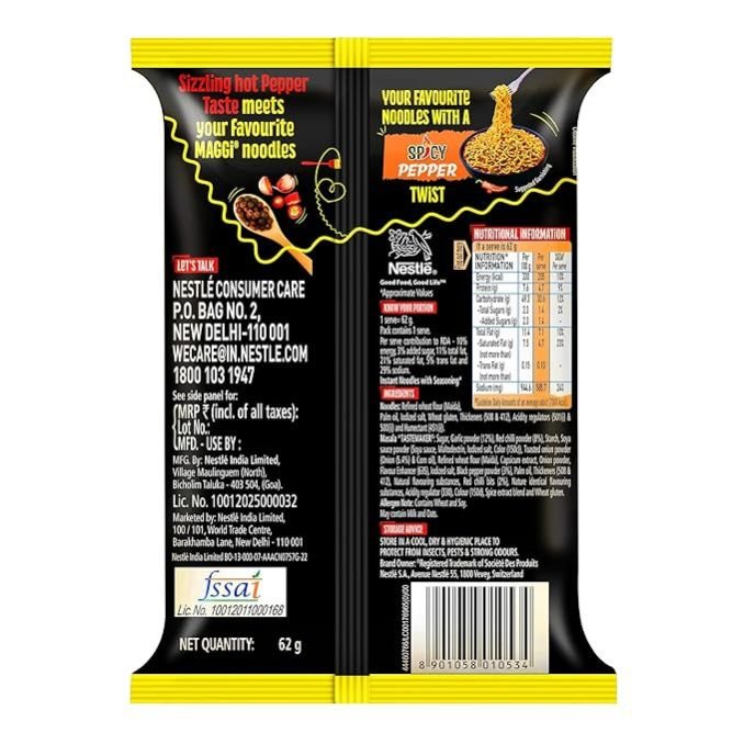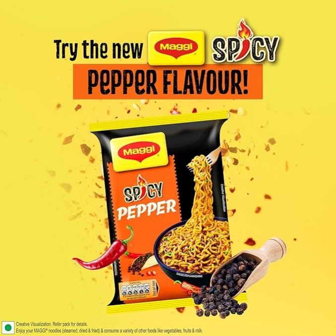 Your favourite bowl of MAGGI Noodles with the sizzling hot taste of PEPPER! Looking for your yummy MAGGI taste with an enjoyable spicy twist? Well, look no further! Your favourite MAGGI is here with Spicy PEPPER noodles. Indulge in a spicy affair with this instant noodle, where yummy PEPPER meets your favourite MAGGI noodles. These instant noodles are perfect for when you are craving something spicy and delicious. So, grab your forks and enjoy your favourite noodles with a spicy PEPPER twist anytime.