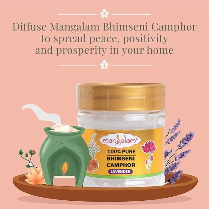 - USAGE: Diffuse Mangalam Bhimseni Camphor on an Aroma diffuser / Aroma burner / Kapur dani for a sweet fragrance that will change energy levels and create a positive aura around you and your home.