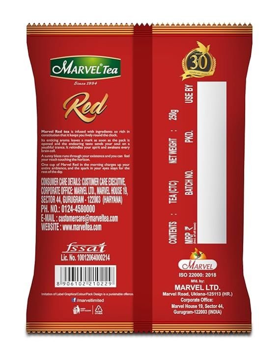 0 Review Of Product Marvel Tea Red 250g with Extra Long Leaves, Handpicked Strong Chai From Assam & Darjeeling, Refreshing Aroma & Rich Taste - Black Tea