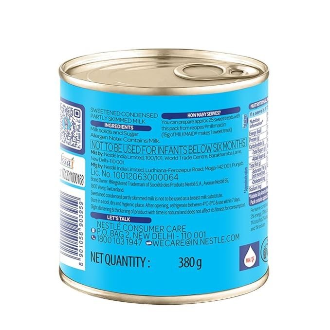 Partly skimmed, sweetened condensed milk from the house of Nestle A perfect dessert partner that elevates desserts to make it rich, creamy and delicious A versatile ingredient to make mouth-watering sweets at home, from traditional to western desserts. Milkmaid has been delighting generations for over 100 years! Also Try - Milkmaid Mini 190 g - a new resealable easy pour pack