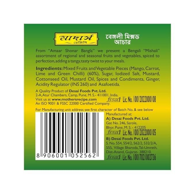 Mother's Recipe Bengali Mixed Pickle Bottle,300 G