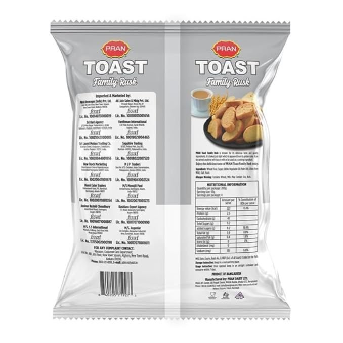 PRAN Original Family Toast Rusk, 200 Grams