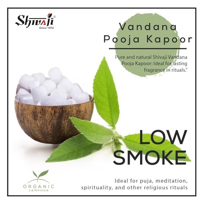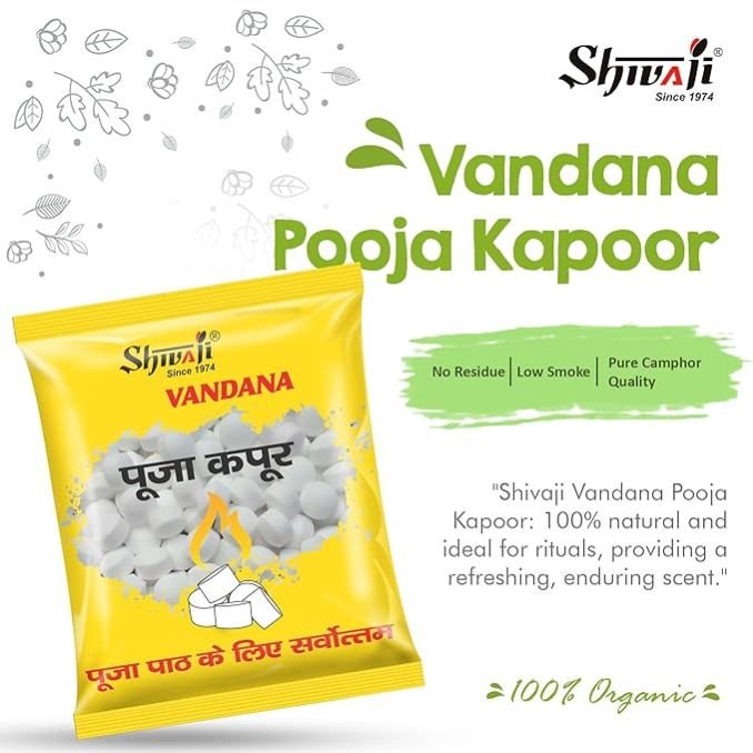 Shivaji Vanda Pure Camphor burns instantly and does not require much effort. The flame lasts the duration of your aarti. It is free from harmful chemicals, pesticides & no additives. Pooja with pure camphor tabletnas symbolizes union with God. They don't leave behind any residue Features :- Easy to burn, Long-lasting Flame, It can be used in daily Pooja, ideal for daily use during pujas, aartis and meditation at home, office, shops, etc.