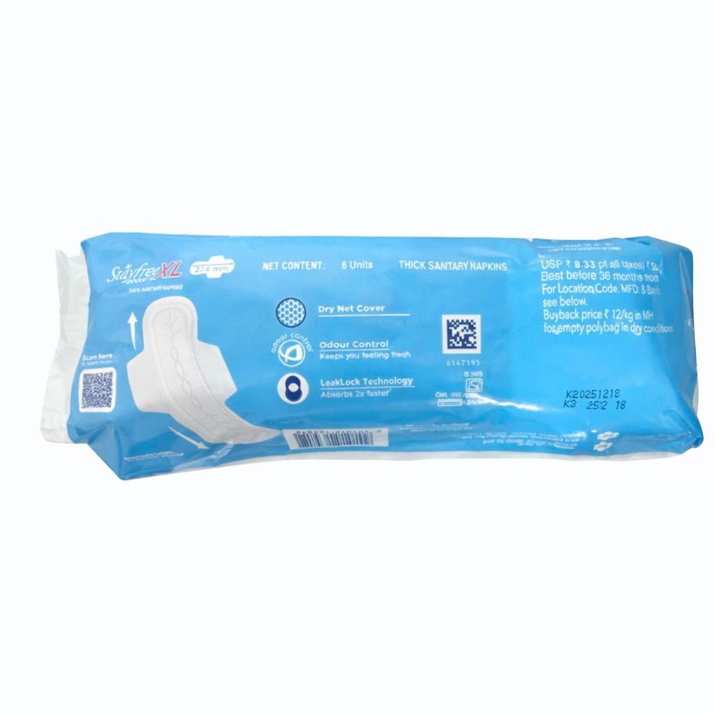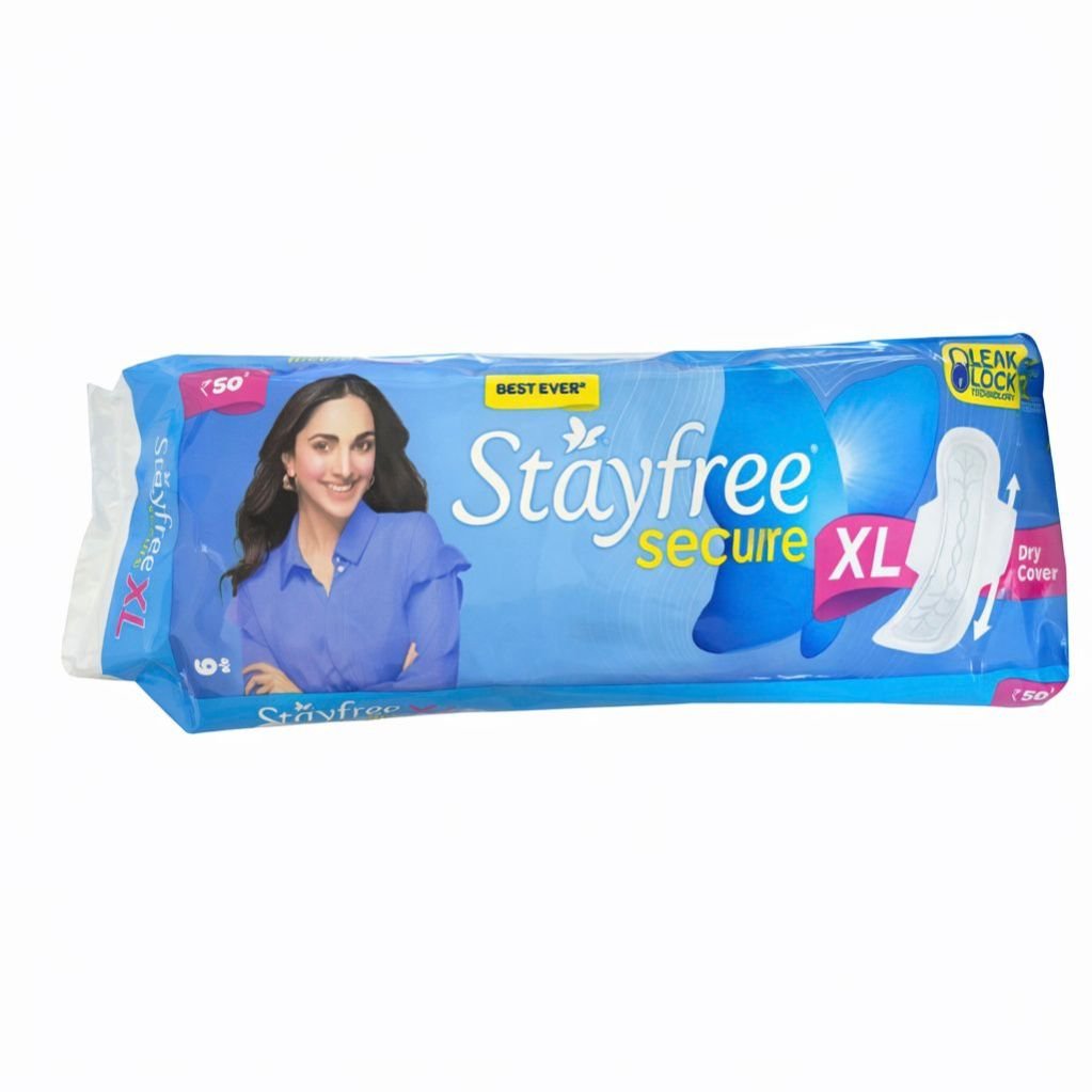 Stayfree Secure Cottony Soft Cover Sanitary Napkin with Wings (XL) 6 pads