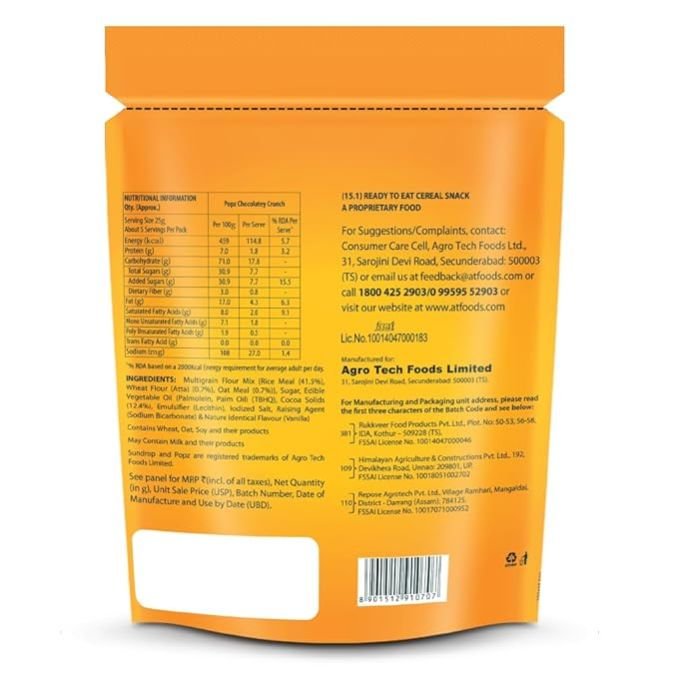 Sundrop Popz Choco Fill Pillows - Dark Chocolate Flavour Sundrop Popz: Choco filled pillows which are crunchy outide and chocolatey inside Experience yummy multigrain chocolatey pillows with dark chocolatey centre as an anytime snack. Relish after a meal for a healthy indulgence, an evening bite for energy or a midnight snack. It is a source fibre, high in B group vitamins and naturally cholesterol free.