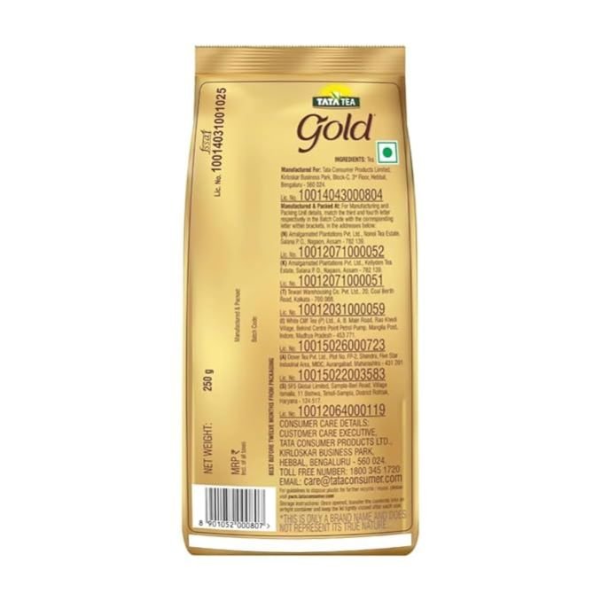 For discerning tea Drinking consumers: Enjoy the superior balance of rich taste and irresistible aroma with Tata Tea Gold Exquisite Tea Leaves: Made by blending 15% gently rolled aromatic long leaves with 85% Assam CTC tea leaves Quality Standards: Premium quality tea, selected and blended by Tata Tea experts Savor Every Moment: Perfect cup of chai to delight you & your loved ones at any time of the day Commonly Searched Topics: tea 1 kg, tea in pantry, chai patti, masala tea, chai, tea leaves, strong tea, Tata tea, Tata tea gold, Tata tea premium, tea powder, tea, Tata tea premium 1kg pack, black tea, Darjeeling tea, chai tea Material Features: Vegetarian; Ingredients: A Fine Blend Of Assam Ctc Teas With 15% Long Leaves; Caffeine Content: Medium Caffeine; Item Form: Loose Leaves; Container Type: Bag;