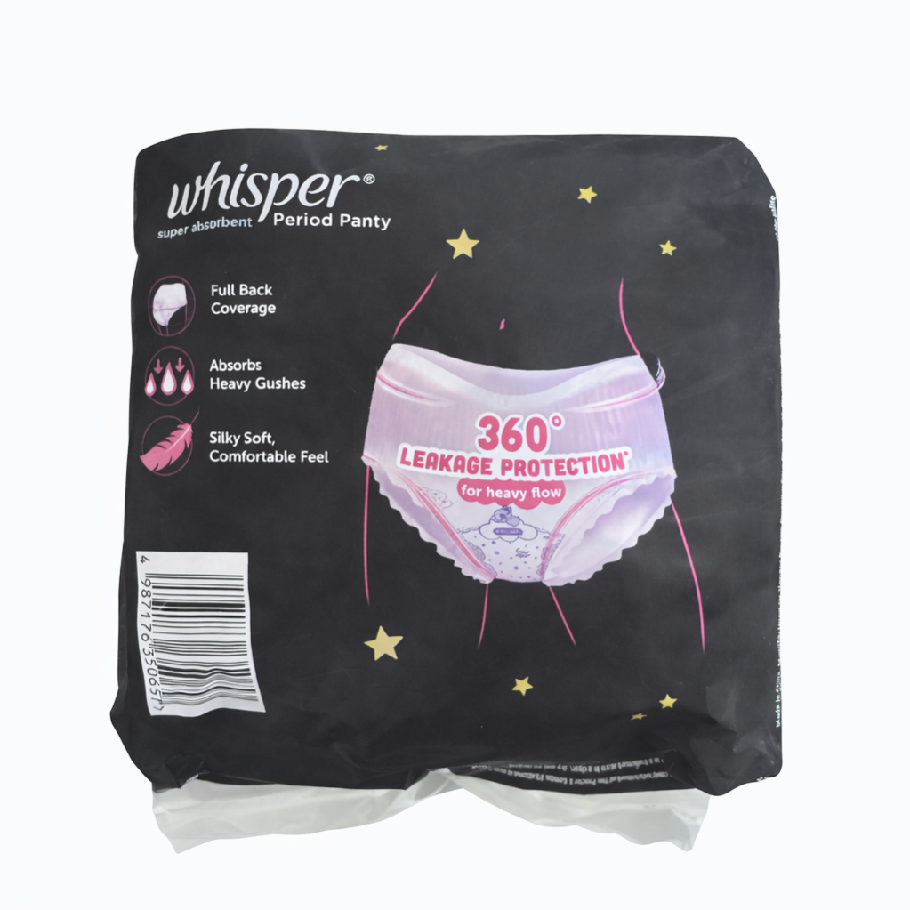 Whisper Period Panty offers all-around protection and comfort during your menstrual cycle. Designed like regular underwear, it provides superior leakage protection with its highly absorbent core and soft, breathable fabric. This period panty ensures you stay dry and comfortable throughout the day or night. So, what are you waiting for? Go ahead and buy this product online today!