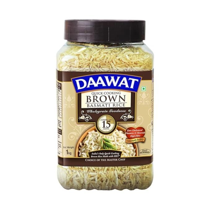Daawat Brown Basmati Rice , Cooks in 15-minute, Fibre-Rich Basmati Rice Jar | 1 Kg