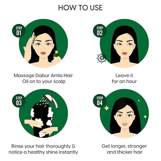Dabur Amla hair oil has amla extracts. Amla is known to be a power fruit for your hair. As the power of amla nourishes your scalp from within, your hair is strengthened from root to tip Amla is known for its potent hair growth promoting activity and thus is regarded as a potent herbal treatment for hair loss Amla is also enriched with omega 3 and has rich hair nutrients like vitamin c, tannins and amino acids which helps in making your hair stronger Dabur Amla hair oil also helps in dandruff reduction