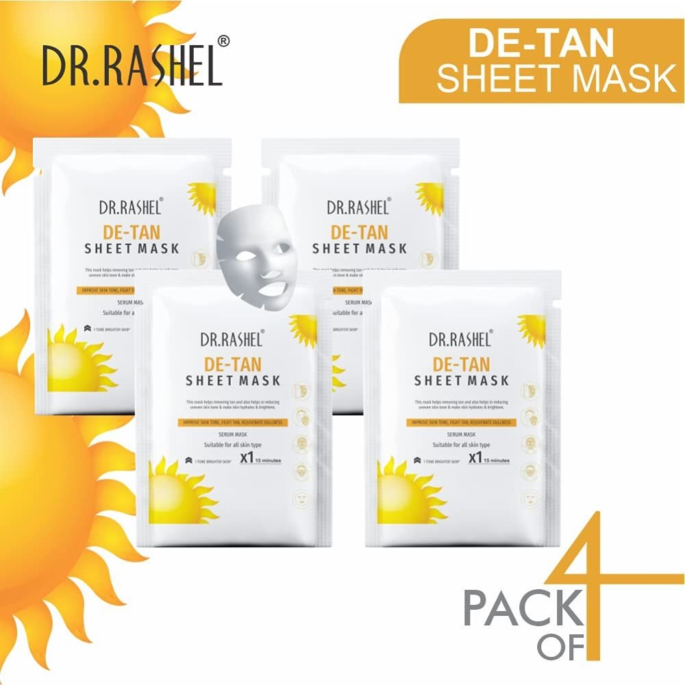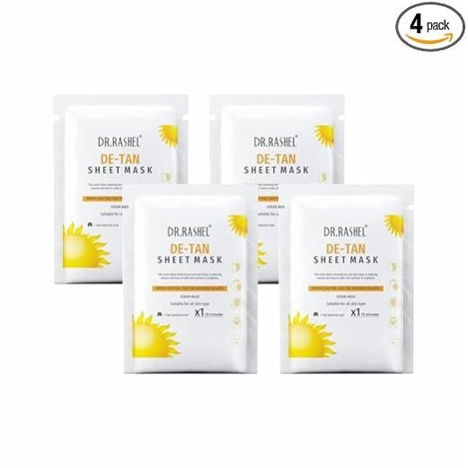 DR.RASHEL De-Tan Face Sheet Mask With Serum for Unisex, All Skin Soft and Healthy Skin, Deep Cleansing & Oil Control, Repairing & Nourishment, Soothing and Hydrating, 20g each (Pack of 4)