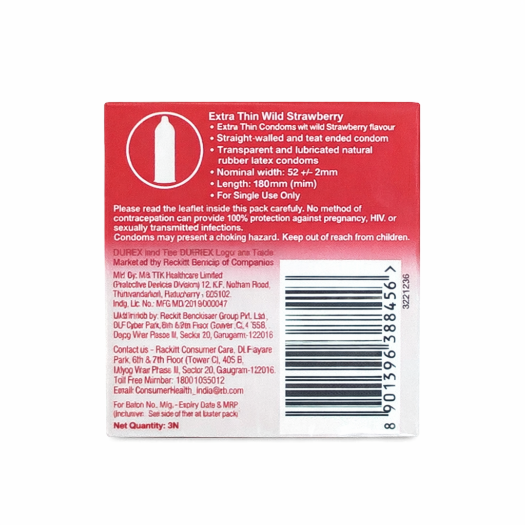 Durex Extra Thin Wild Strawberry Flavoured Condoms For Men - 3S