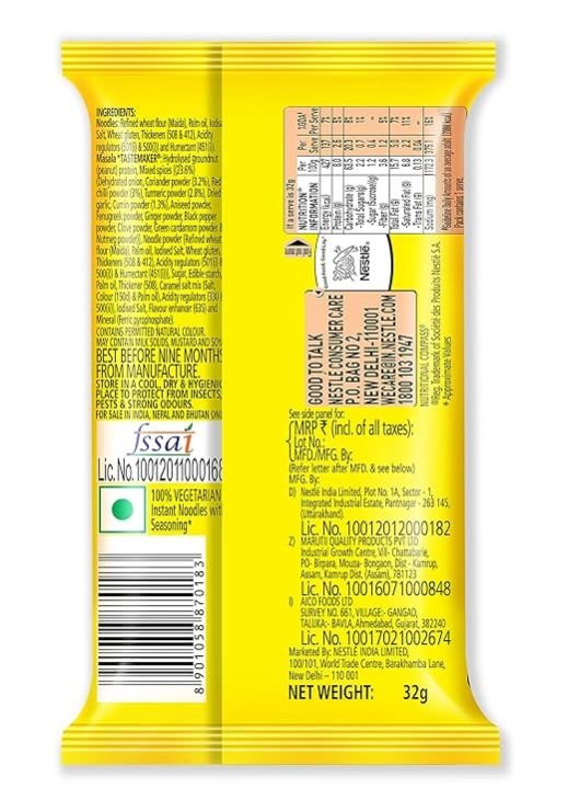 Maggi 2-Minute Masala Noodles is an instant noodles brand manufactured by Nestle Made with the choicest quality spices Each portion (70g) provides 15% of your daily Iron requirement Ready in 2 minutes, perfect for a hang out or house party Contains a noodle cake and the Favourite Masala Tastemaker inside, for a quick 2 minute preparation