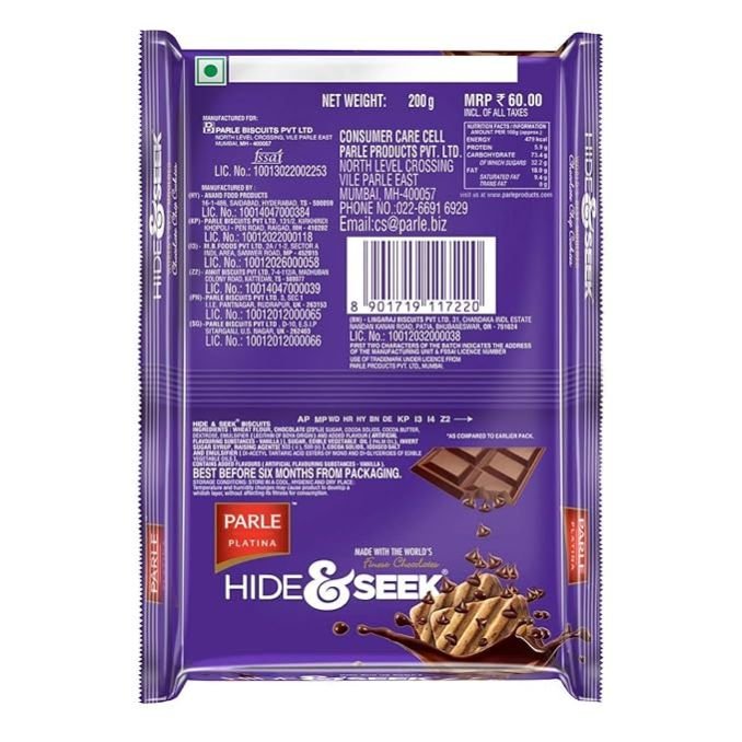 Parle Hide and Seek Chocolate Chip Cookies, 200g