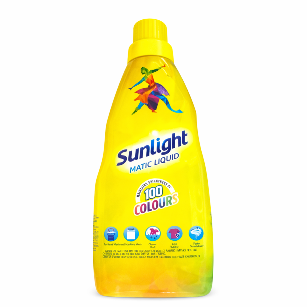 Repeated washing with only detergents makes clothes dull and lifeless, and they start to look old after a few washes. Sunlight Liquid Detergent has revolutionary Colorlock technology that goes deep inside the cloth fibre and locks the colour of your clothes, keeping them looking bright and beautiful wash after wash. Your new dress will now look new for longer. Sunlight Liquid is the next-generation colour care for your clothes. Its zero-sodium formula is gentle on hands and clothes and maintains the new-like shine of your clothes. It dissolves quickly in water and leaves no residue on your clothes. Therefore, no more powder patches on your clothes and no waste of powder. It is very simple to use and can be used for both hand washing and machine washing.
