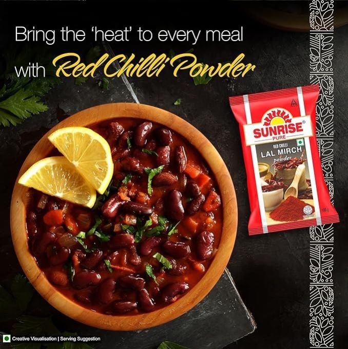 SUNRISE PURE RED CHILLI POWDER- Sunrise Red Chilli Powder takes spicy to a whole new level BEST QUALITY- Since its inception over a century ago, Sunrise has dedicated itself to delivering traditional, authentic taste & quality products that stay true to their origins. PACKS A PUNCH- It's red, it's hot and it adds a vibrant pop of red color to your lip-smacking meals. Sunrise Red Chilli Powder adds the desired 'heat' to every dish, serving a potent and delicious bite. SOURCED FROM THE BEST FARMS - Sunrise Spice Powder is made with raw ingredients from quality crops sourced from the choicest farms ALSO TRY - Sunrise offers a range of products that cater to Bengali palate such as Sunrise Pure Shukto Masala Powder, Sunrise Pure Machher Jhol Masala Powder, Sunrise Pure Panch Phoron Whole Spice, etc.